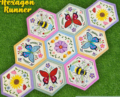 Learn how to embroidery and assemble hexagon block the easy way using a design from Sweet Pea Embroidery. The Spring Hexagon Table Runner will make a perfect addition to your home.